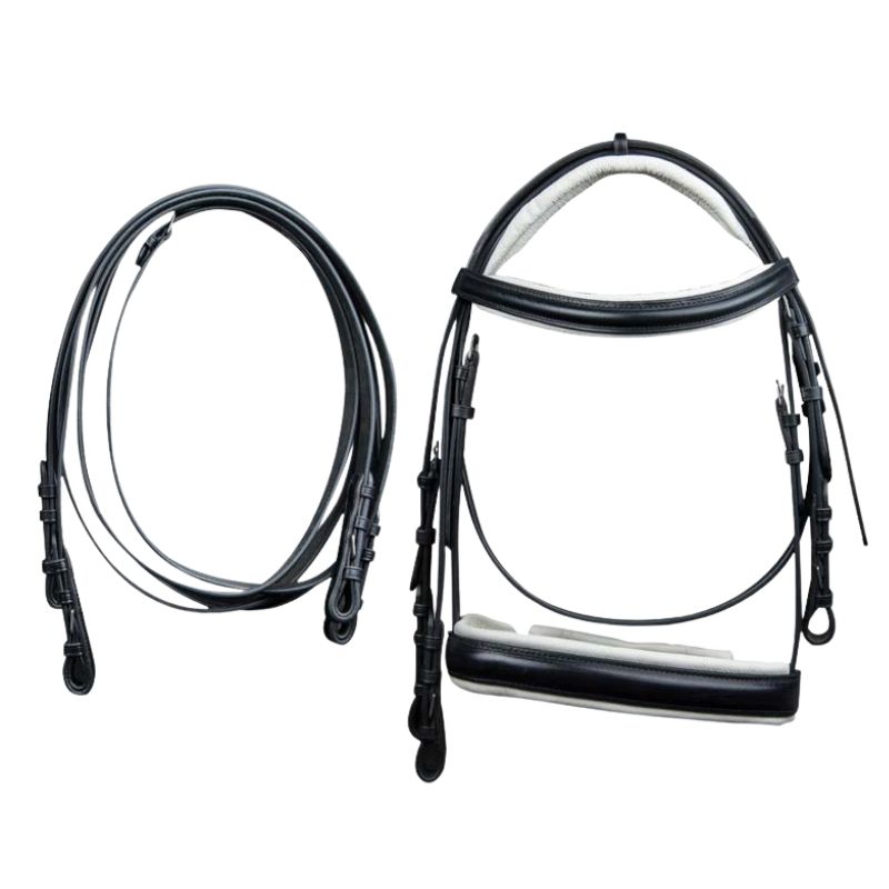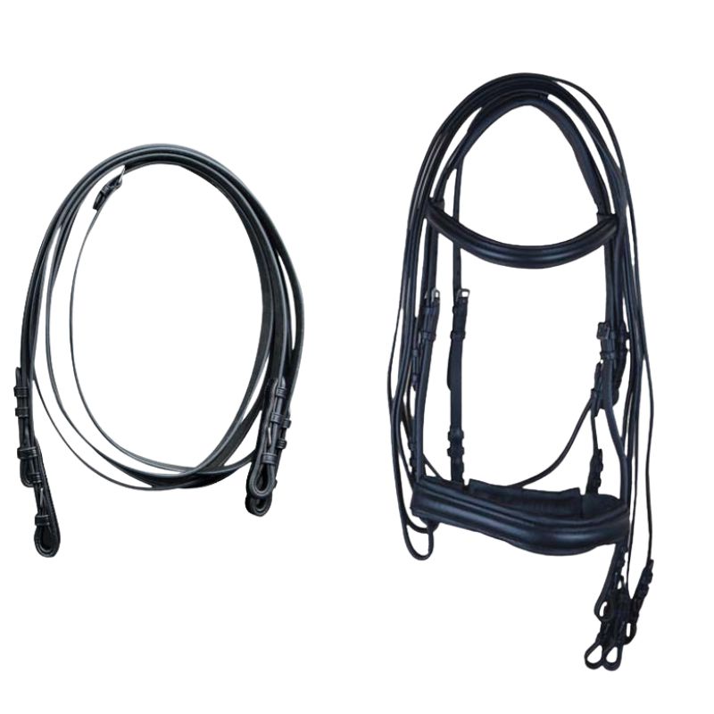 Cabezada de montar de doble rienda de cuero.