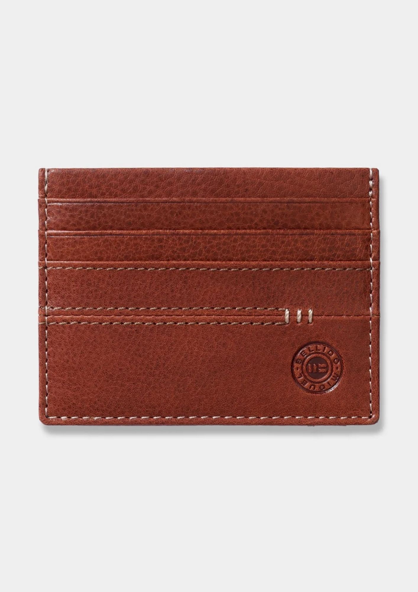 Confeccionada en piel de vacuno, con costuras vistas y pequeño bordado decorando.